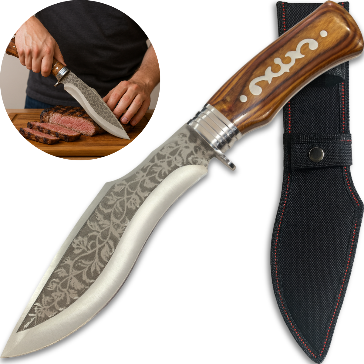 A Faca Tribal ZORNIX é mais que uma lâmina — é uma obra de arte funcional. Seu desenho curvo com gravações tribais na lâmina conquista colecionadores, aventureiros e entusiastas de cutelaria com muito estilo e personalidade.