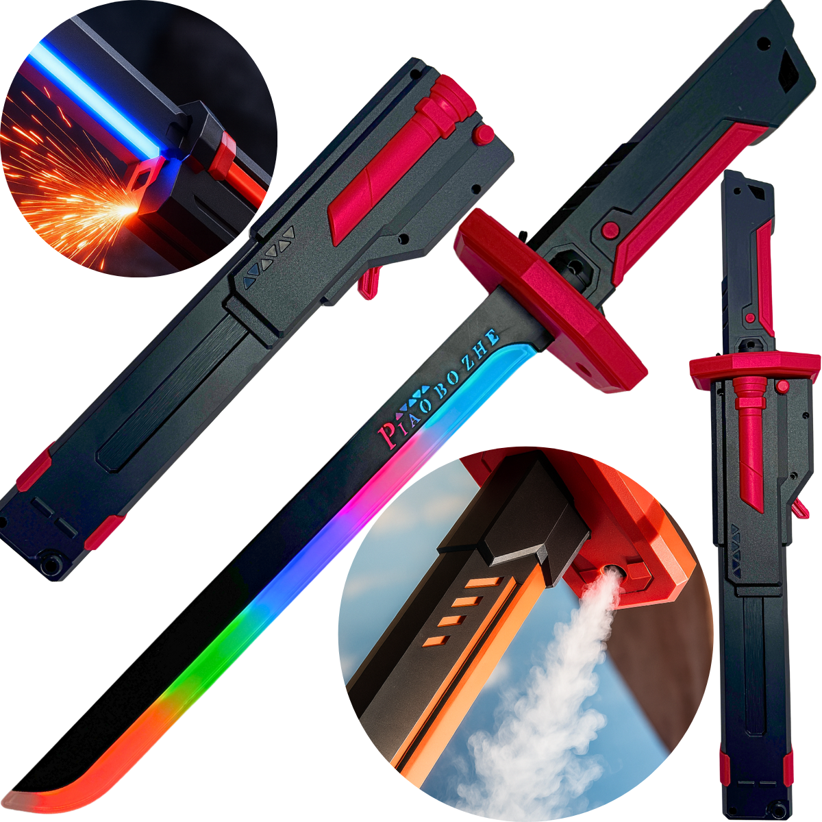 Espada LED ZORNIX com Fumaça, Faísca, Sons e Suporte Tipo C – Edição Premium